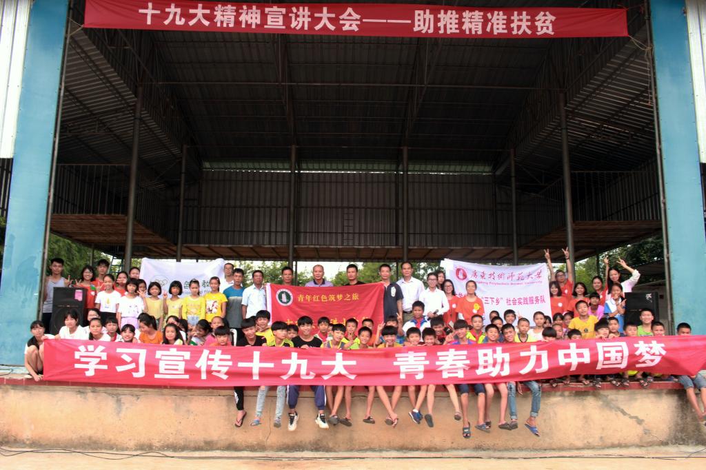 花色铸梦队组建于2018年3月,对接湛江雷州,根据粤西村镇特点,分层次、分对象举办十九大精神宣讲活动,以确保十九大精神的层层覆盖。因地制宜的宣讲大会,让大家愿意听,无缝融入课堂教学的十九大精神和习近平新时代中国特色社会主义思想,让学生听得懂。不忘初心、牢记使命。十九宣讲,花色铸梦。