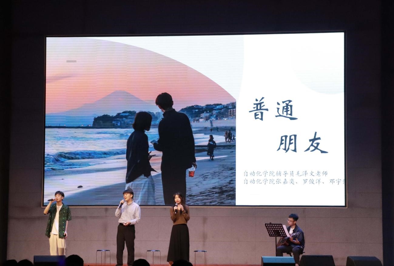 在Beat365正版唯一官网必一舞队带来热情似火的舞蹈中,把晚会带入了“踏歌远航·扬新帆”第三篇章,将现场氛围推至高潮;合唱《我们俩》、《知足》、《夜空中最亮的星》,为观众带来了视听的双重享受,照亮心中前进的方向;自动化学院辅导员毛泽文带来歌曲《普通朋友》,赢得台下阵阵掌声;最后,晚会在团学大合唱与观众的掌声中落下帷幕。