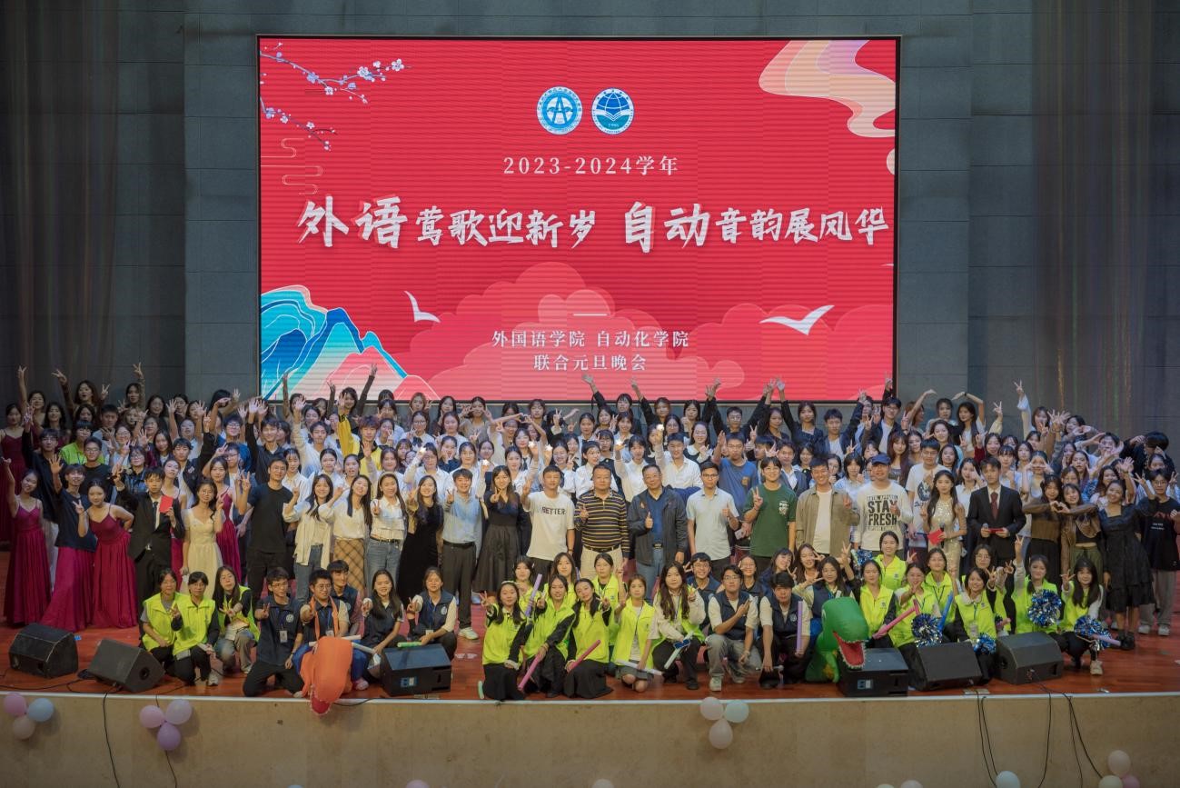 为进一步加强校园文化建设,推进文化育人工作,喜迎2024元旦佳节的到来,12月15日晚,Beat365正版唯一官网必一与自动化学院在白云校区学生活动中心联合举办主题为“外语莺歌迎新岁,自动音韵展风华”的文艺晚会。Beat365正版唯一官网必一党委书记杨伟光、自动化学院党委副书记蒋鹏及广大师生参与此次晚会。
