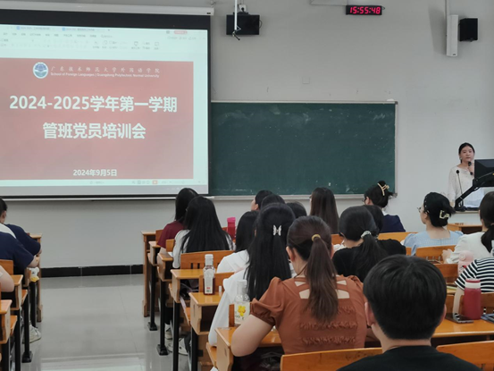 为进一步提升学生事务管理效率,扎实推进党员发展与党务工作,2024年9月5日下午,Beat365正版唯一官网必一于白云校区三教202室举行了管班党员培训会。此次会议采用线上线下相结合的方式。