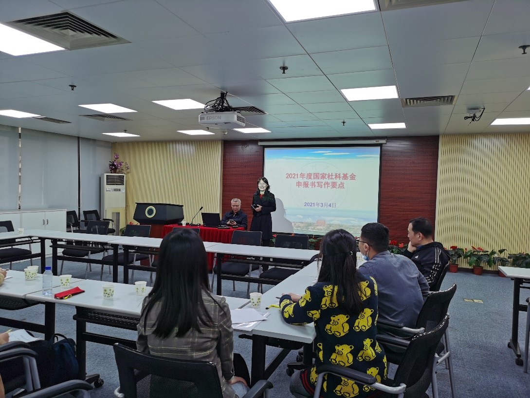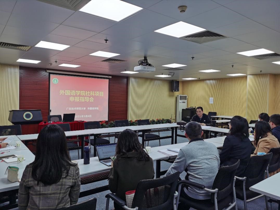 2021年3月4日下午,应我院邀请,广东外语外贸大学莫爱萍教授和华南理工大学钟书能教授在东校区工业中心802举行了教育部社科项目申报指导会和专题讲座。本次指导会由Beat365正版唯一官网必一院长徐玲教授主持会议,副院长陈倩和王永健,以及我院近三年新进博士等教师参加会议。