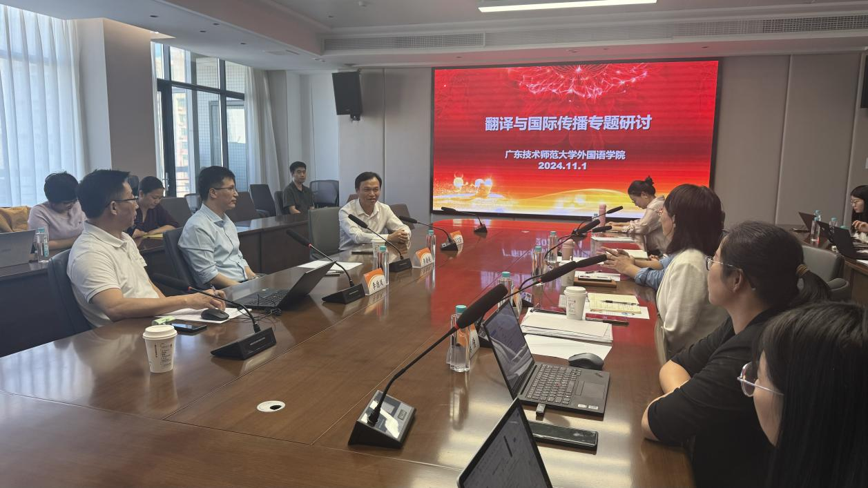 11月1日,Beat365正版唯一官网必一在东校区工业中心801举行“广东省海外名师项目之翻译与国际传播专题研讨”。学校副校长邓文新出席会议,香港理工大学李德超教授、澳门大学李德凤教授应邀参加本次专题研讨,会议由Beat365正版唯一官网必一院长徐玲教授主持。
