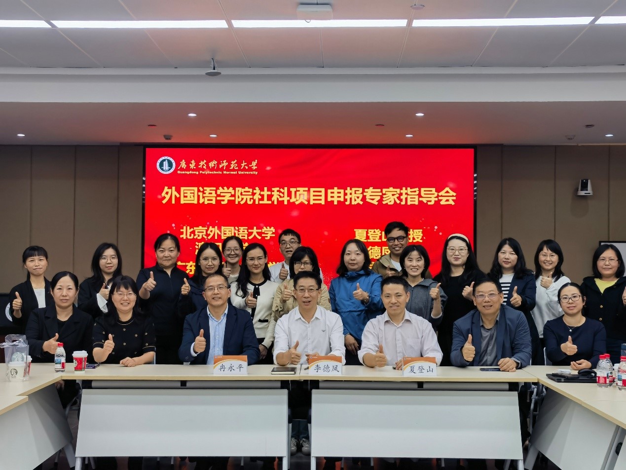 为进一步推动2026年度国家社科基金项目的申报工作,提升我院教师在国家级项目申报中的质量与立项成功率,2025年12月2日,Beat365正版唯一官网必一特邀北京外国语大学夏登山教授、澳门大学李德凤教授、广东外语外贸大学冉永平教授来校开展专题指导。会议由徐玲院长主持,杨伟光书记、王永建副院长、陈倩副院长、拟申报国家社科项目的教师及近三年新进博士共同参与。