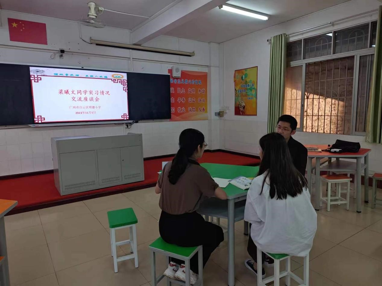 郭丹丹老师去到黄埔区文冲小学看望实习生。与英语组几位老师一起听了她的一堂一年级的课,课堂气氛活跃,衔接自然,多样化的游戏活动等方法很好地完成了教学任务。课后交流会上几位老师都对她的课堂表示赞许和满意,也对教学细节和未来方向提出改进意见。另外,学校很重视我们学生的实习,在校指导老师一直给予学生教学和生活的指导,称赞我们的学生认真负责,热心肯干,希望有更多学生过来并肩同行,共同成长。