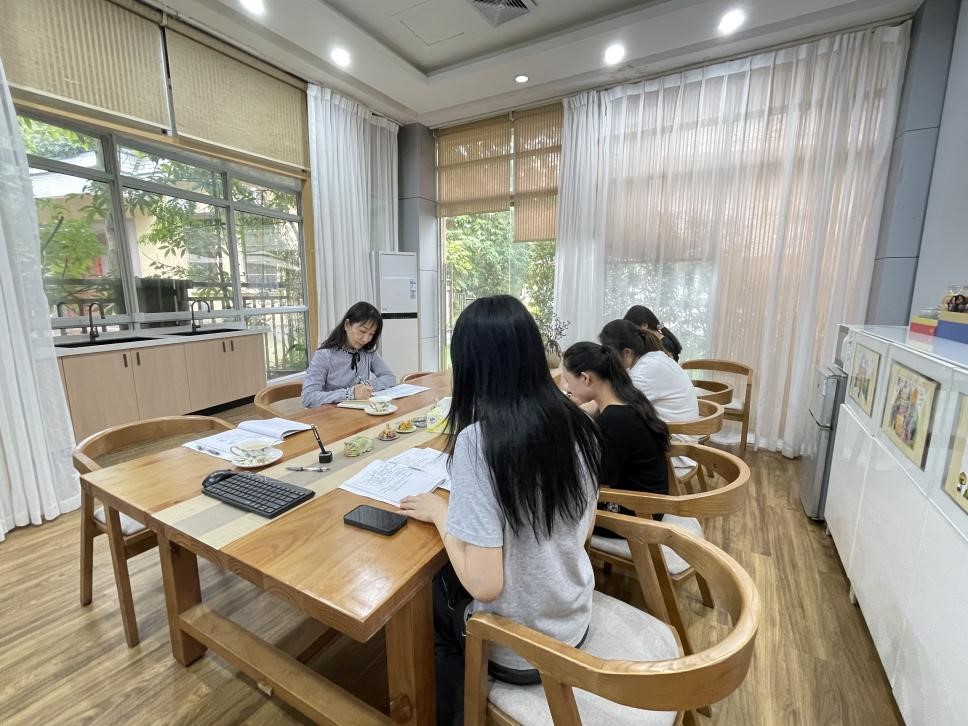 会后冯悦老师与实习的同学们进行了单独的会谈,了解了他们的生活情况及询问他们是否遇到什么困难,以及需要什么帮助,三位同学表示目前一切都比较顺利。同时冯悦老师也鼓励他们提前规划论文的写作思路,可以在教学实践中找到自己感兴趣的方向并抓紧时间查阅文献,提前为论文开题做好准备。