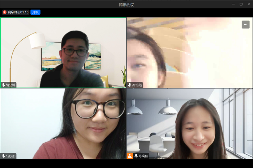 11月10日,胡公博老师与深井小学、洛浦西二小学实习的三位同学马欣彤、秦怡然、陈晓佳进行实习中期线上座谈会。每位实习同学从承担任务情况、实习单位给予的软硬件支持、所教学生表现、实习遇到的困难、教学心得体会五个方面,对自己上半学期的实习历验切实思考,踊跃发言,共同助力下半学期实习工作优化推进。