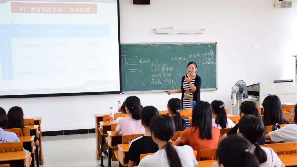 在专业教育中,英语专业负责人刘彬老师和商务英语专业负责人王永建老师分别对英语专业和商务英语专业的新生们讲解了本专业的基本概况、课程设置、人才培养方案、学习方法,让新生对自己所学的专业有了更清晰的了解。
