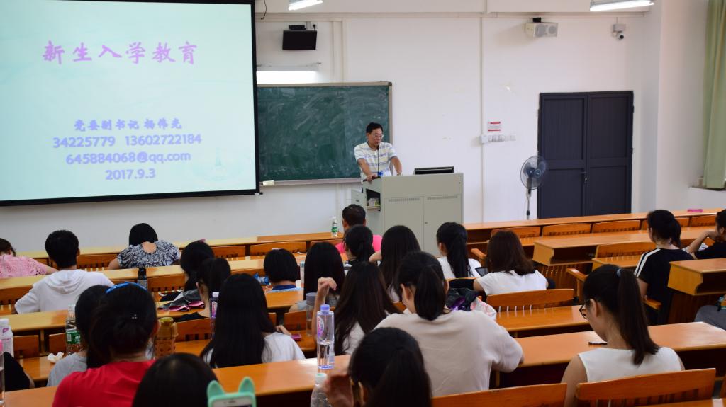 赵丕强书记对2017级新生作了入学教育讲话。他勉励广大新生勇担社会责任,多读书,勤学习,脚踏实地,德学兼修,同时分享了自己多年以来对于如何提高学习效率的一些心得体会,希望广大新生有新的开始、新的目标、新的生活,力争取得新的成绩。