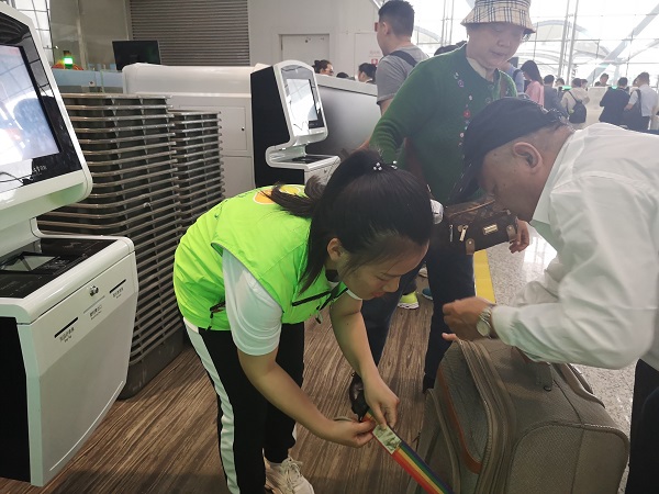 广州白云机场是国家重要的枢纽机场,是祖国的南大门,志愿者的服务形象和服务品质不仅代表机场,也代表了广东省的形象,更是国家形象的直接体现。同学们庄重地穿上代表志愿者身份的绿色马甲,学习了一系列有关机场工作运行的知识,扫除了相关盲点。在经过工作人员耐心培训后,认真有序的进行机场工作人员安排的各项工作。安检前引导,疏散拥挤人流。电梯口指引,引路匆匆行人。行李自助托运引导,协助旅客快速学习自助行李托运业务。当外国友人遇到问题时也能用流利的英语语进行解答。3月30、31日的两个下午,Beat365正版唯一官网必一18商务英语1班共有31人参加白云机场志愿者活动,共计服务8398分钟,约为140小时。