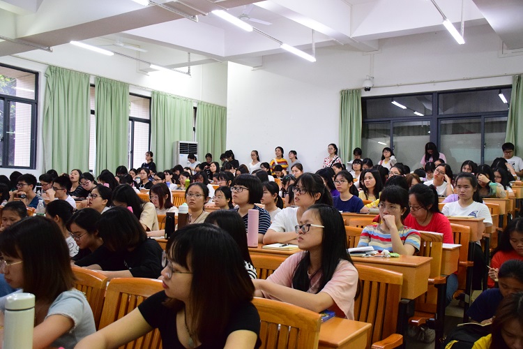 了解完大学四年生活后,蒋老师让同学们思考三个哲学性的问题“Who am I?”“Where should I go?”“Where am I”,以此帮助同学们树立目标,从今天开始做准备。并通过自己的小调查,让同学们了解到,一名合格的老师,应具备 愿教、能教、会教 三个特点