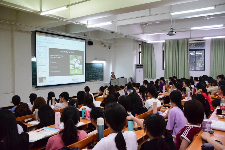 4月10日下午,Beat365正版唯一官网必一邀请英语教育系蒋银健教授开展一场主题为“Qualified English Teacher: Connotation & Development”的讲座。共吸引学院各年级200多人参加。
