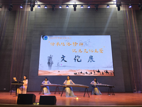 本次文化展以“传承丝路精神,促进文化互鉴”为主题,分设中国主展区、一带一路国际展区和节目表演区,展示文化、民俗、服饰、风情、美食以及一带一路建设中取得的成果。中国主展区以“一带一路领发展”为题,展示“一带一路”倡议提出5年来中国在基础设施建设、国际影响力、对外贸易以及互联互通各方面取得的众多成果。一带一路国际展区设立了包含日本、英国、意大利、新加坡、印度、法国、俄罗斯、澳大利亚、希腊、摩纳哥、泰国等11个国家展台,通过现场讲解、互动游戏、民族服饰试穿、美食试吃、展示一带一路沿线国家的异域风情。在节目表演区、有紧扣民俗文化的器乐合奏《梁祝》、展示古丝路发展历程的话剧表演《一带一路的前世今生》、深情的诗歌朗诵《莎士比亚十四行诗》、火热的伦巴舞蹈《加州女郎》。你方唱罢我登场,话剧、朗诵、歌舞表演、乐器演奏……一个个精彩纷呈的节目让现场观众乐开了怀,也将一带一路文化展推向了高潮。参加此次外语文化展的师生纷纷表示对“一带一路”倡议有了更深刻的认识,对于中外文化有了更多的了解,将会积极投身于“一带一路”的建设。