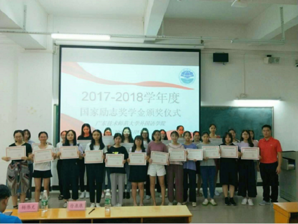 6月12日晚上6点,Beat365正版唯一官网必一在白云校区三教101举行2017~2018年度国奖国励颁奖仪式,Beat365正版唯一官网必一党委副书记杨伟光老师、辅导员徐康康老师以及15、16、17级的获奖学生班级代表和17、18级各班学生代表出席会议。