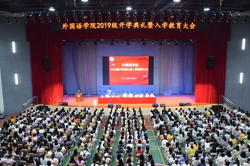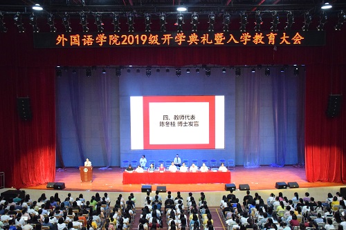 开学典礼在庄严的国歌中和校歌声中拉开帷幕。学院院长贺显斌在致辞中首先代表学院对2019级全体新生加入广师大外院大家庭表示最热烈的欢迎和最诚挚的祝福。贺显斌院长简单介绍了学校以及学院的办学优势及发展历程。并寄语新生尽快适应大学生活,制定远大目标并为之奋斗,合理利用时间,实现自己的理想。