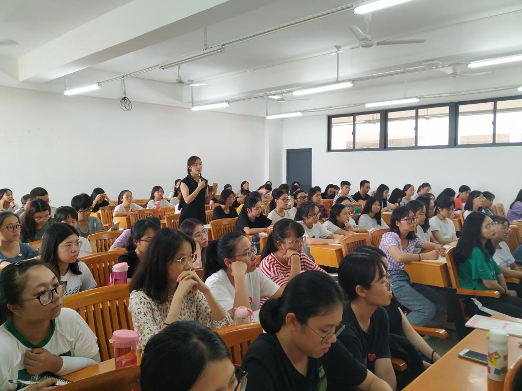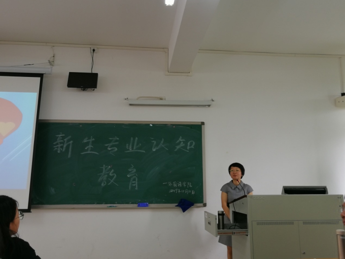 专业教育旨在让新生全面了解所学专业的发展前景、课程体系、就业方向以及如何合理规划四年的大学生活。首先,郭珊珊老师从人才培养目标、核心课程、职业选择、培养特色、主要实践教学环节、课程设置等方面详细介绍。期间杨书记和郭老师不仅分别对新生的专业学习、就业方向等疑惑进行了答疑,还通过一张张生动的照片,回顾了近年来我院专业实习和实践活动中的精彩瞬间,凸显了我院人才培养的特色。最后郭珊珊老师希望同学们在打好坚实语言功底的基础上,加强专业知识的学习,积极融入团队学习,做好规划。