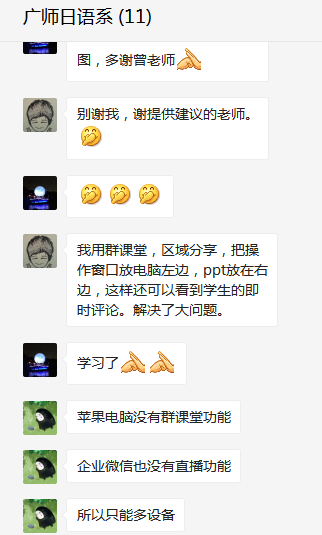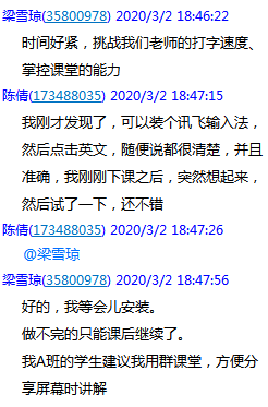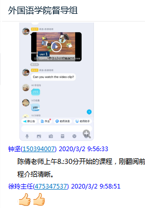 老师课下主动在教师备课群分享线上操作的经验,互相解答功能上的疑问,对于网络平台出现的卡顿、声音播放等问题,老师们准备了更多应对方案,功能上的灵活运用使老师们的线上课堂更加游刃有余。相信充分的准备加上线上经验的积累会令接下来的线上课程更加顺利、多彩。