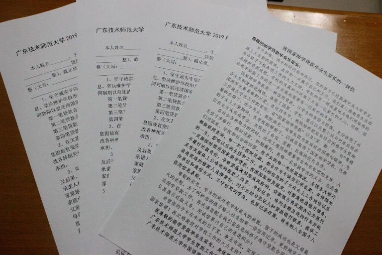 最后,贷款毕业生在学院助学助理的引导下,认真核对《毕业确认表》上的信息,填写《诚信还款承诺书》并签名摁手印。