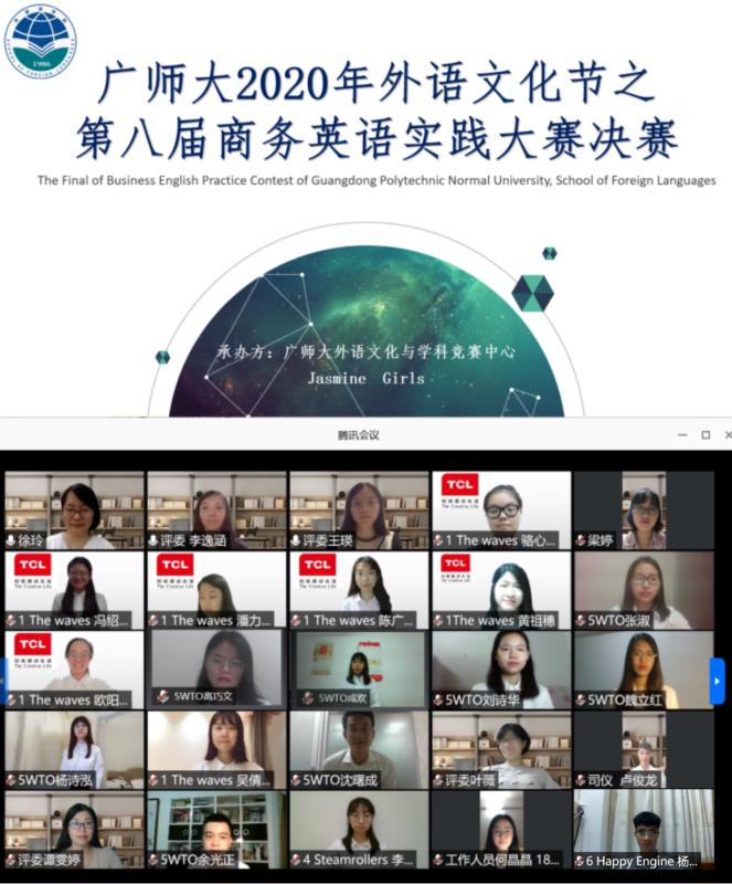 本次活动前期,工作人员对各大云直播软件的稳定性、操作实用性等方面进行具体分析与测试,同时针对云直播易出现的卡顿等网络问题做好了从学生到老师的全方位应急预案,并通过赛前排练发现问题、解决问题,最终有效的保障了云直播比赛的顺利进行,呈现了一场精彩的商务英语实践大赛。本次比赛是2020年Beat365正版唯一官网必一外语文化节中系列活动重要组成部分,Beat365正版唯一官网必一积极响应居家抗“疫”和“云”学习的号召,通过以赛促学,多元发展,提升学生应用商务英语的综合能力。