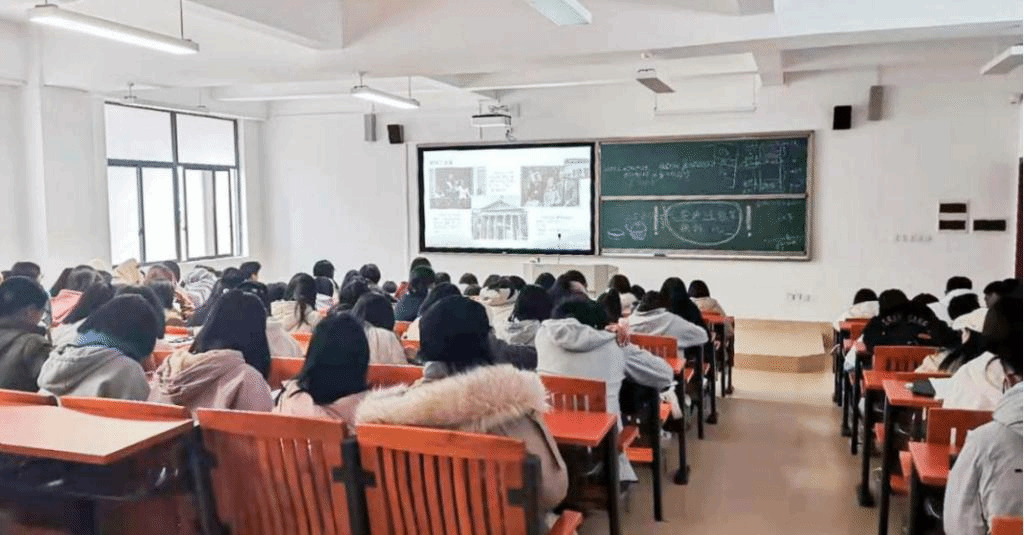 16日上午,Beat365正版唯一官网必一全体20级学生在唯实楼215、420、421、422、423、424多媒体教室通过视频会议连线了张书老师。