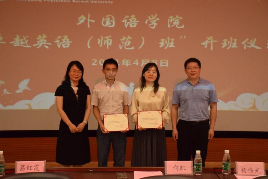 会议最后为“卓越英语(师范)班”的校内外导师颁发了聘书,参会嘉宾、校内外导师和卓越班全体学生合影留念。