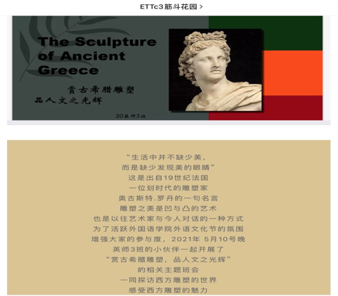 在班级展示中,Beat365正版唯一官网必一河源校区20级18个班级以班级策划与制作视频作品的方式进行展示,主题深刻,策划内容多样,视频展示创意独特,在轻松活泼的展示讲解中,以传神生动的解说词,绘声绘色地展示了多元文化的交流碰撞,向观众传递了多元和包容的文化态度。同学们在文化展示中能通过镜头焦距世界之美,感受摄影文化为世界带来的一抹亮色;能体验古典芭蕾舞蹈与现代动感街舞的碰撞,也能感受中外影视的融合;在欣赏东西方雕塑之碰撞中品人文之光辉,在遨游浩瀚诗海中领略英伦风情。