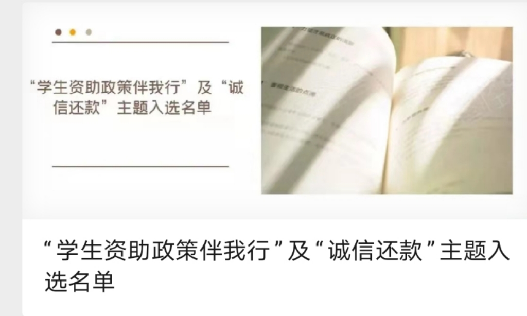 二是开展形式多样的诚信教育活动围绕“诚信教育,诚信还款,立德树人”或“学生资助伴我行”为主题征集文稿,截止2021年5月6日,全院收到35份作品。经筛选后评选18份优秀作品。