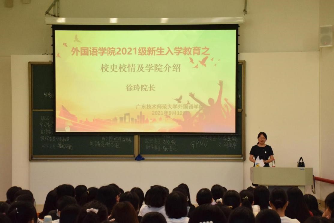 随后,徐玲向同学们诠释了广师大悠久的历史与深厚的文化底蕴,展示了Beat365正版唯一官网必一学生规模、师资力量与学科建设。教导学生要做一名优秀的大学生,并用Muscle、Money、Mind串联起了三个时代:有力量就笑傲江湖的时代,经济基础决定上层建筑的时代,思维能力智慧引领的时代。接着,院长根据“Mind”的衡量标准希望同学们提高六种能力:目标定位能力,正确选择能力,批判性思维能力,得体表达能力,耐挫折能力,相处合作能力,并与同学们共勉:智融古今,读名篇经典求博学;学贯中外,践厚德唯实力求新。