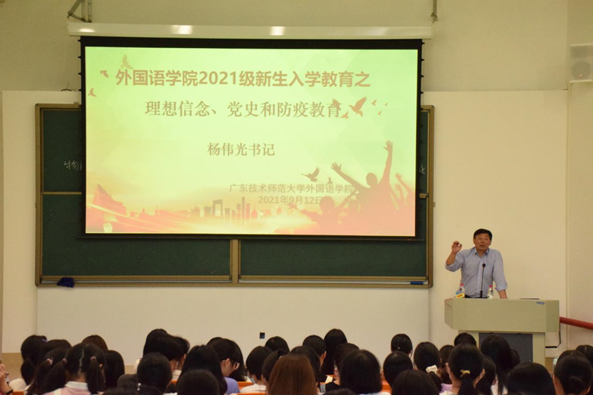为加强学生党史教育、爱校荣校教育,提升学生思想政治素质和专业素养,9月12日上午,Beat365正版唯一官网必一党委书记杨伟光,院长徐玲在河源校区博学大讲堂101、102室,为2021级新生讲授了“思政第一课”,学院党政领导班子成员、各系部主任、专业负责人、部分专任教师、辅导员和新生共530余人现场聆听了讲课。