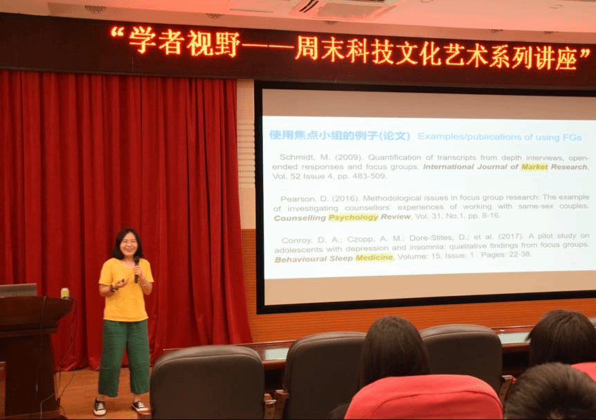 讲座中,谢建媚博士对科学研究中使用“焦点小组”访谈的方法进行实例分析,从理论和实践的层面指出其研究方法的重要性,以辩证的思维探究焦点小组的利弊,通过引用文献、列举实例、展示图片、与听众进行互动等方式让听众对“焦点小组”的实际运用有了进一步的认识。其风趣幽默、通俗易懂的讲解不仅吸引了在座同学的听讲兴趣,还让同学们学到研究设计的宝贵知识。讲座后,同学们积极主动地提出自己的困惑,谢建媚博士进行了详细的答疑。