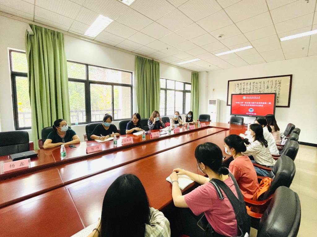 3月15日下午,我院考研复试及调剂指导交流会在白云校区一教202召开,会议采用线上和线下相结合的方式举行。我院院长徐玲,党委副书记王琴琴,副院长王永建、陈倩,英语教育系系主任陈冬桂,辅导员宋伟奇、杨鑫出席了本次交流会。会议由王琴琴副书记主持。