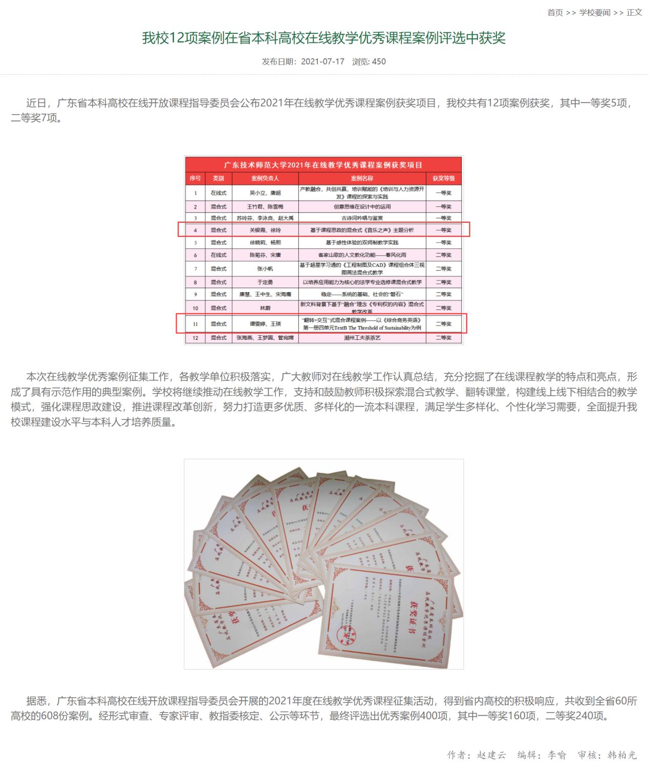 2. Beat365正版唯一官网必一关银霞老师和徐玲教授的项目《基于课程思政的混合式《音乐之声》主题分析》获2021广东省本科高校在线教学优秀课程案例省级一等奖。
