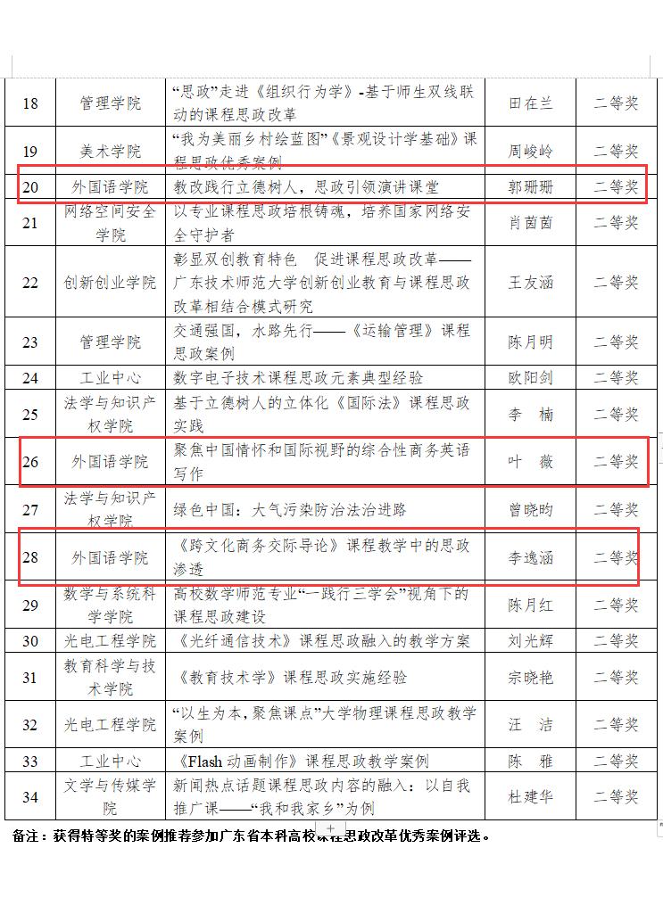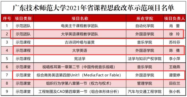 【广东省教育厅发布《关于公布2021年度课程思政建设改革示范项目认定结果的通知》(粤高教函〔2021〕21号)】同时将本次立项的“课程思政示范课程”认定为2021年省级一流本科课程(课程思政)。
