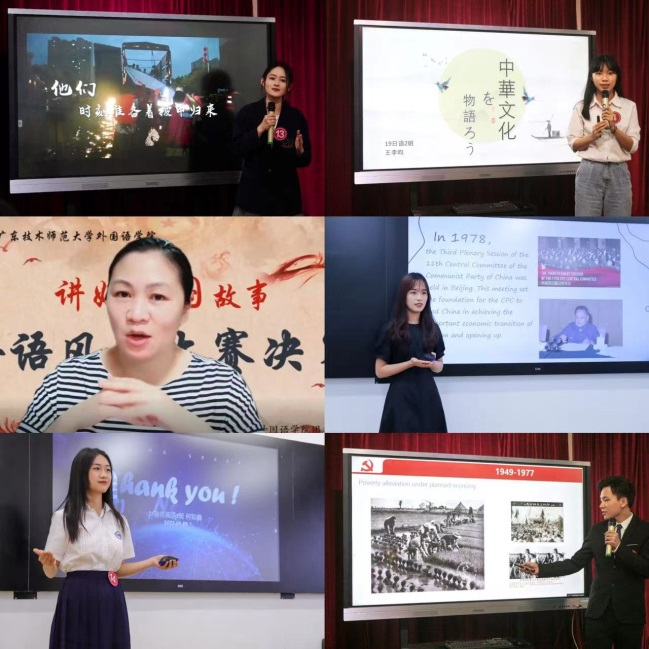 决赛采用线下直播演讲,线上转播观看的方式进行。来自英语专业组、非英语专业组、日语专业组二十一名选手紧扣演讲主题,立足青年视角、聚焦中国历史进程及时代楷模。在各位选手的故事中,既有忠贞爱国,宁死不屈的赵一曼,又有保家卫国,抗洪救险的士兵英雄;既有毅然回国,报效祖国的钱学森,又有隐姓埋名,甘于奉献的邓稼先;既有无私奉献,扎根边疆教育的张桂梅,又有放弃优渥生活,投身家乡扶贫建设的黄文秀;选手们从不同角度、不同层面讲述中国故事、传中国声音、颂中国精神,让现场听众产生了强烈共鸣。