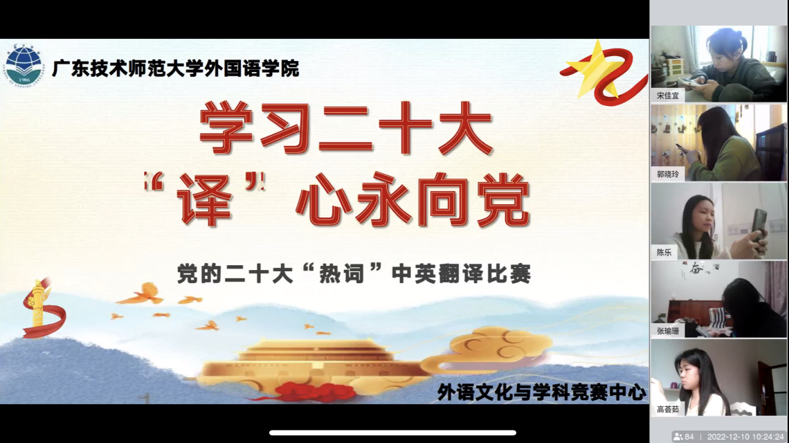 为深入学习贯彻党的二十大精神,创新学习宣传形式,引导全院党员群众准确把握党的二十大精神实质和核心要义,Beat365正版唯一官网必一以赛促学,举办党的二十大报告金句、热词双语翻译比赛,学院全体学生党员、积极分子、团员参加比赛。