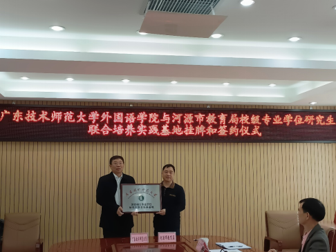 3月10日,Beat365正版唯一官网必一与河源市教育局共建“校级专业学位研究生联合培养实践基地”挂牌和签约仪式在河源市教育局举行。Beat365正版唯一官网必一党委书记杨伟光和河源市教育局钟小明副局长为基地挂牌,学院副院长陈倩、河源市教育局主任督学曾卫民、基建科科长曾伟彪、人事科科长陈莉菊、教师发展中心主任黄强、教研院院长何功兴等出席仪式。