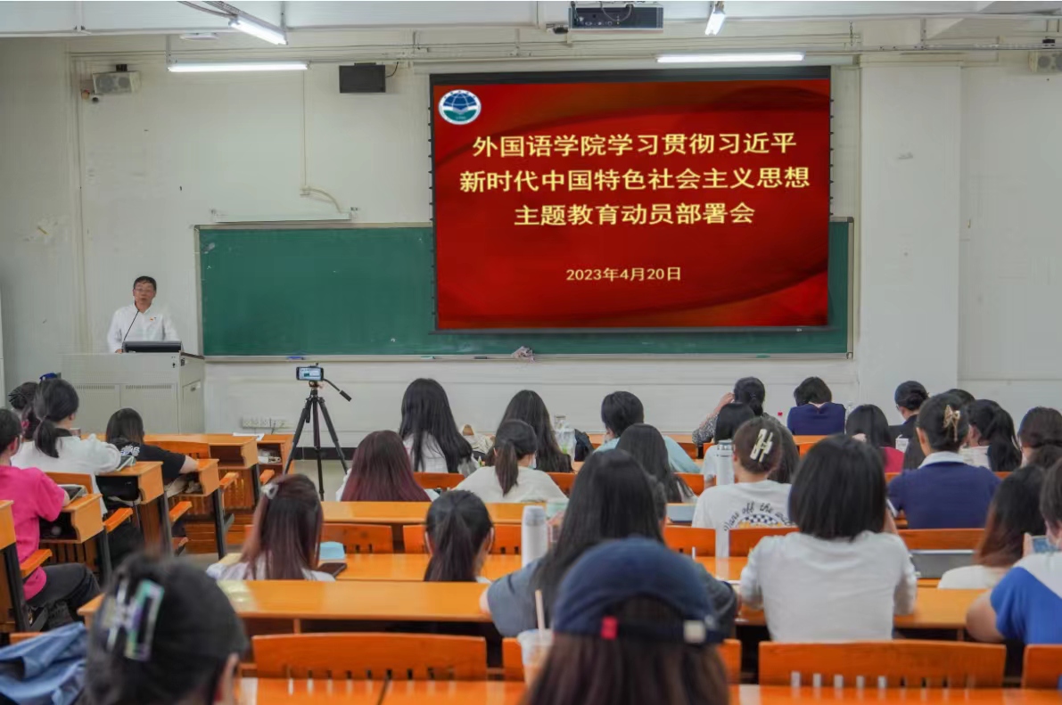 杨伟光结合学院实际,提出五点要求:一是提高政治站位,深刻领会主题教育的重大意义,切实把思想和行动统一到习近平总书记重要讲话精神和省委、校党委统一部署上来。二是加强理论学习,认真落实党委理论学习中心组学习制度和第一议题制度,各党支部要依托“三会一课”、主题党日,通过交流研讨、宣讲阐释、案例教学、线上培训等方式组织党员学习,结合常态化党史学习教育,运用红色教育资源和党性教育基地开展学习。三是扎实深入开展调查研究,结合学院实际情况,制定调研计划,细化具体安排,深入调查研究,形成高质量调研成果。四是要聚焦出色完成学院翻译硕士点申报和英语师范专业二级认证两项工作,补齐学院在教育教学、学科专业建设、人才队伍建设等方面的短板,促进学院工作高质量发展。五是要树立以人民为中心的发展思想,坚持落实学院书记院长接待日制度和党员领导干部直接联系师生制度,为师生办实事,解民忧。