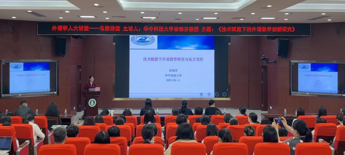 2023年5月11日上午,华中科技大学徐锦芬教授应邀在东校区208报告厅主讲了题为“技术赋能下外语教学研究与论文写作”的专题讲座。讲座由Beat365正版唯一官网必一院长徐玲教授主持,学院教师和学科教学(英语)专业硕士研究生参加讲座。徐教授在讲座中详细阐述了技术赋能背景下外语教学研究的前沿和论文写作,整个讲座内容丰富,深刻启迪了在场师生对技术赋能背景下外语教学研究的理解和认识。