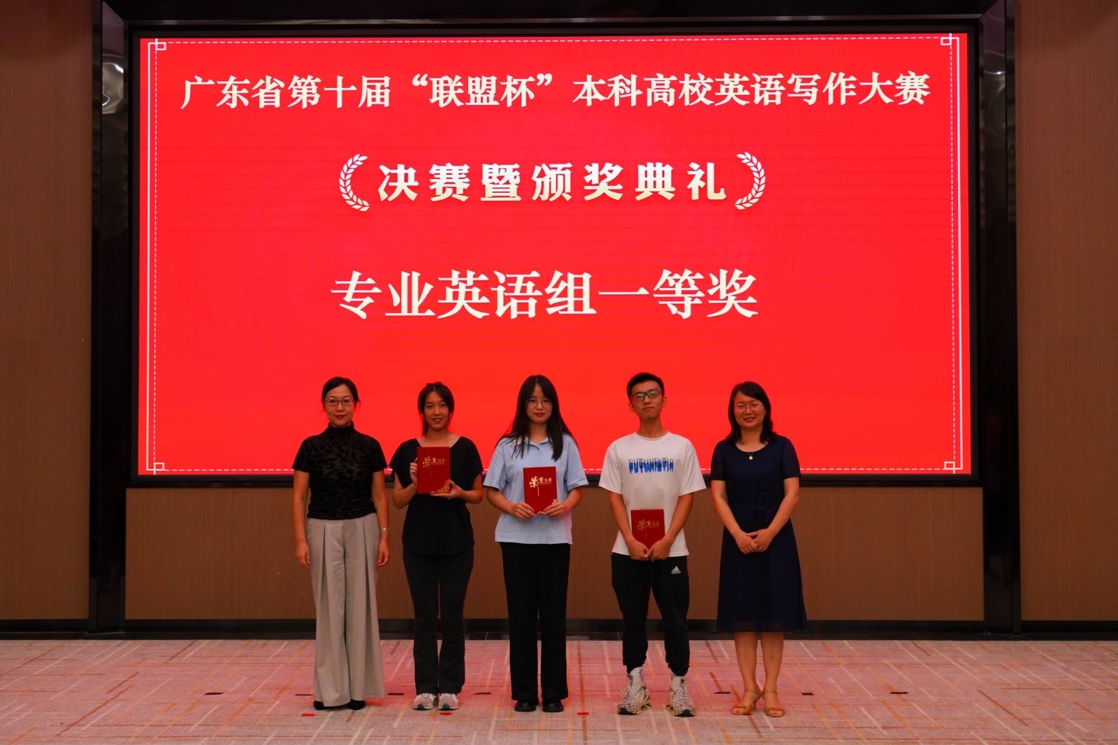 Beat365官网Beat365正版唯一官网必一院长徐玲教授受大赛组委会邀请,作为评委嘉宾和主旨发言嘉宾出席此次大赛决赛和颁奖典礼,并带领Beat365官网指导教师和参赛学生取得佳绩。其中,2021级文学与传媒学院学生冯凯晴荣获大学英语组一等奖(指导老师:唐慧玲)、2020级英语(师范)专业学生黄俊浩荣获英语专业组一等奖(指导老师:刘远航),2020级商务英语学生李嘉敏(指导老师:刘飞飞)和2020级英语(师范)专业学生陈嘉怡(指导老师:卢迎如)荣获英语专业组二等奖、2020级计算机学院学生朱梅基(指导老师:关银霞)和2021级电子与信息学院学生肖喆荣获大学英语组三等奖(指导老师:江晓宇)。