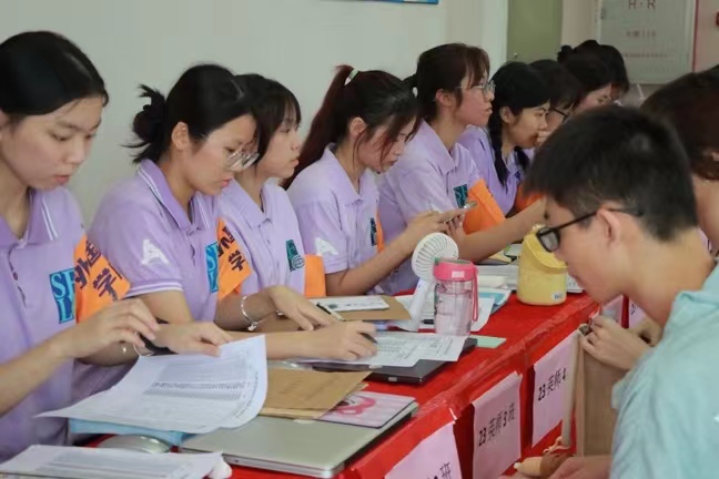 迎新工作人员及新生志愿者在现场热情地为同学们服务,帮助他们顺利办理入学手续、安排住宿、参与新生活动,并介绍校园环境和学院资源带给新生温暖和关怀。