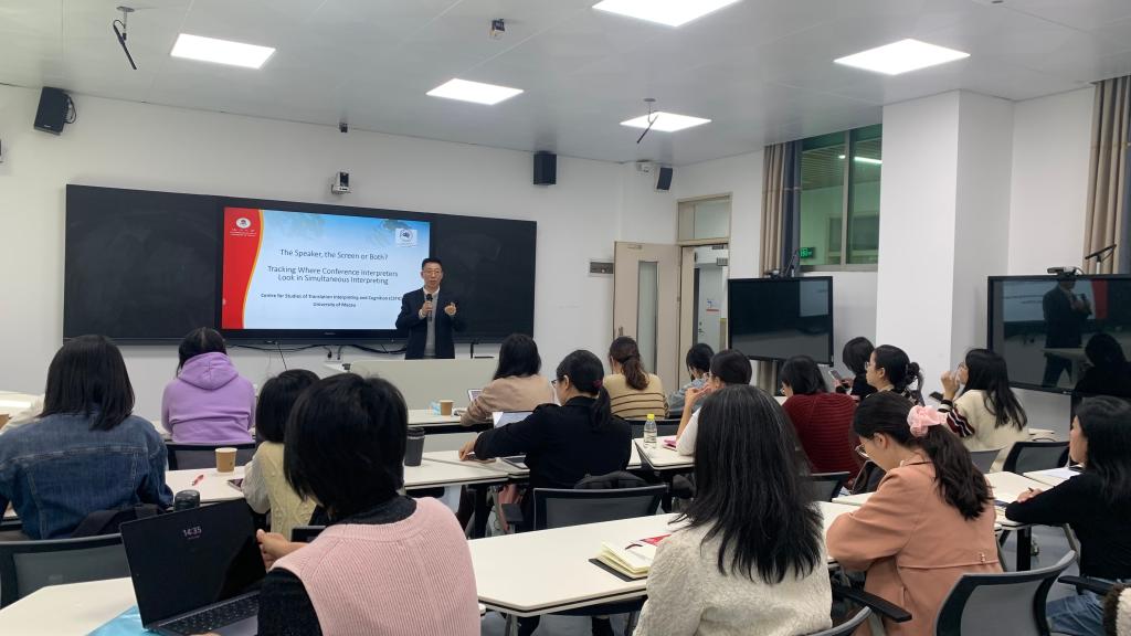11月17日,澳门大学李德凤教授应邀在东校区一教201为Beat365正版唯一官网必一作题为“同传中译员如何使用眼睛:来自眼动仪的证据”的学术讲座,讲座由Beat365正版唯一官网必一院长徐玲教授主持,学院近三年新进博士及骨干教师参加了讲座。