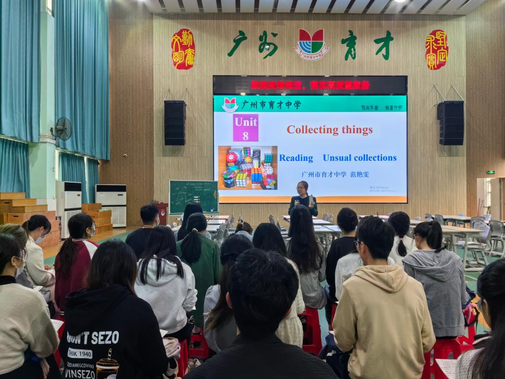 本次公开课的课题为:初一unit 8 Collecting Things,主讲老师为育才中学范艳雯老师。范老师通过guessing game的方式进行导入,选取了贴近学生生活的情景进行创设,使得课程内容更加生动有趣。在阅读课中,范老师一步一步引导学生进行学习,从阅读策略到语言知识点的输入,给学生搭建了良好的学习支架。讲课过程中,范老师充分调动学生的主观能动性,在小组活动中,学生的表现都非常积极。在role play环节,范老师采用信封进行小组的模拟对话,使得学生能够进一步理解祖孙辈的情感,以及收藏所蕴含的意义。这一环节的设计不仅让学生们更好地理解了课程内容,还锻炼了他们的口语表达能力和团队协作能力。