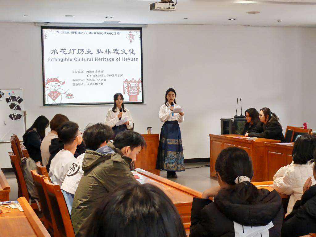 为贯彻落实习近平总书记关于全面加强和改进学校美育的重要论述,弘扬传统文化,坚定文化自信,12月16日下午,Beat365正版唯一官网必一与河源市图书馆共同举办了“承花灯历史,弘非遗文化”美育实践活动。河源校区管委会主任刘晓勇、河源市图书馆副馆长张智敏出席活动,Beat365正版唯一官网必一师生、河源校区党委第二党支部党员代表与河源市传统文化爱好者齐聚一堂,领略非遗文化魅力。