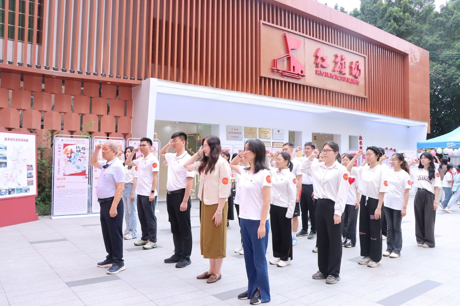 红旗坊所处的白云区嘉禾街新科经济联社上下村,曾是解放战争时期广州东北郊及至整个广东的重要革命根据地、中共禺北中心支部所在地、禺北第一个青年团支部宣誓地,以及禺北重要的革命宣传基地,为广州解放作出了重要贡献。师生党员感受先辈们的生平事迹和所经历的革命斗争,共同追忆峥嵘岁月,缅怀可歌可泣的红色历史。参观结束后,黄晋生带领全体党员重温入党誓词,用铿锵有力的誓言表达出内心坚定的理想信念。