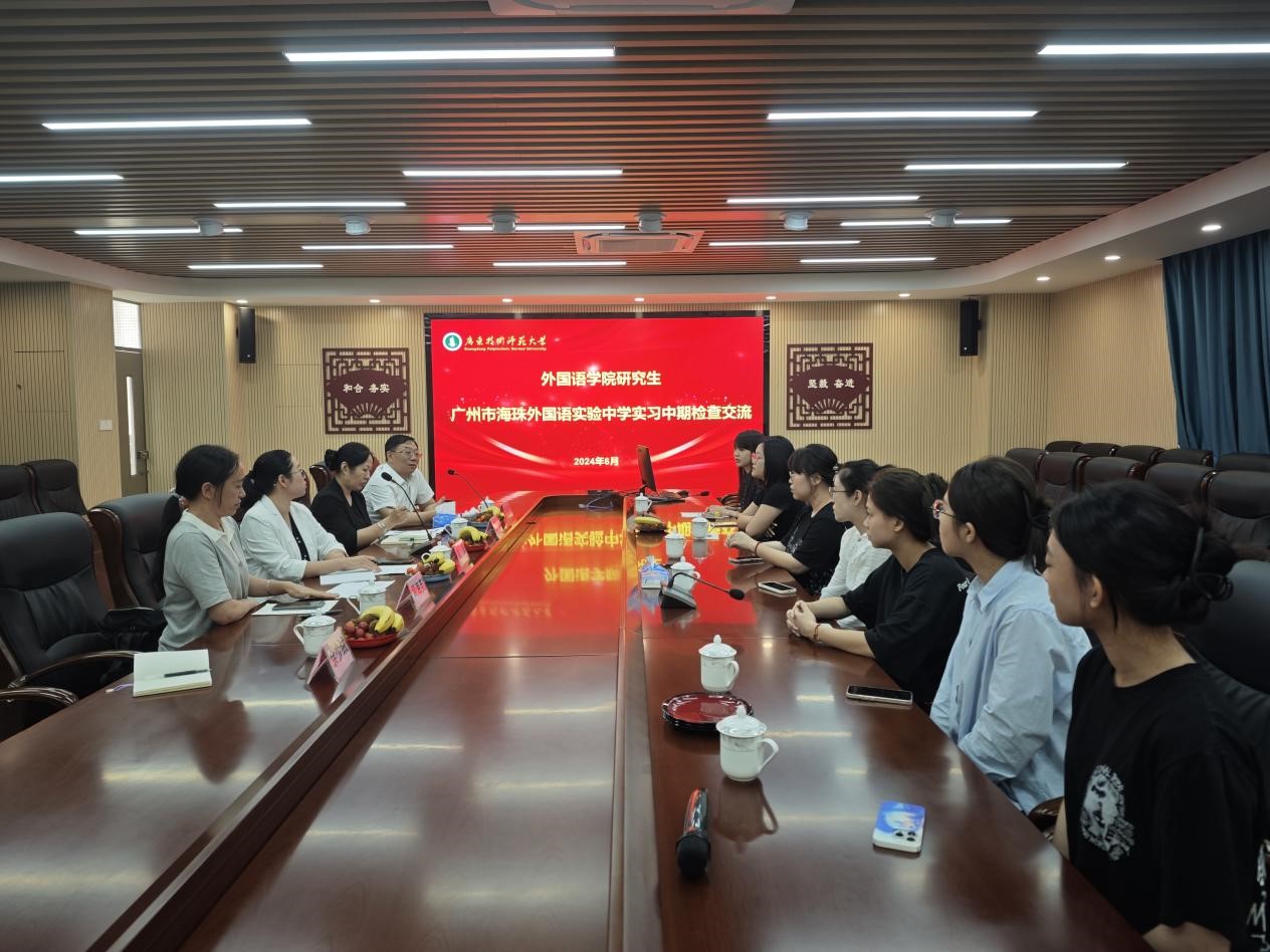 广州市海珠外国语实验中学副校长张键飞与英语课组长、老师们对Beat365正版唯一官网必一领导们的到访表示热烈欢迎,全体成员走访实习单位的校园,深入了解实习单位。本次中期检查主要包括召开教育实习研讨会议及实习生座谈会。教育实习研讨会上,张校长及相关老师纷纷肯定了实习生们在备课、讲课中的专注和投入态度,对学院实习生的教学实践能力表示充分地肯定,表示实习生们在课堂充分展现了实习生扎实的教学基本功和实习期间取得的长足进步。
