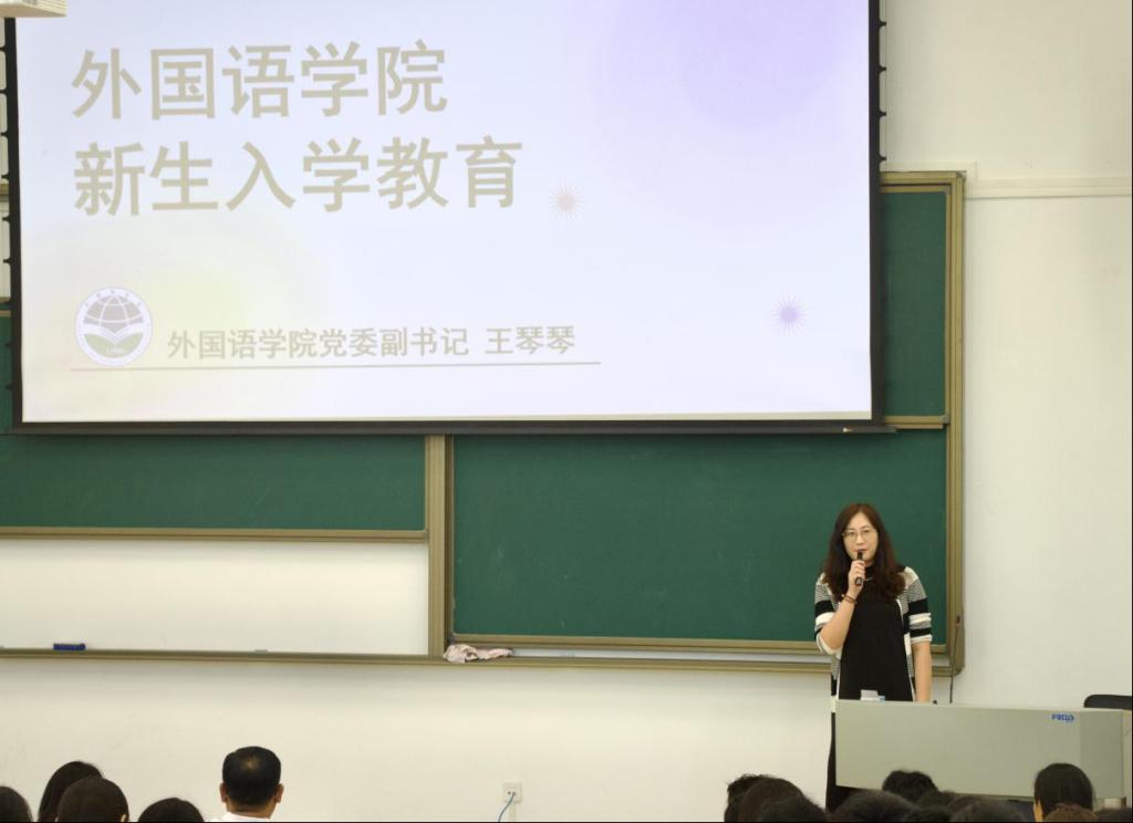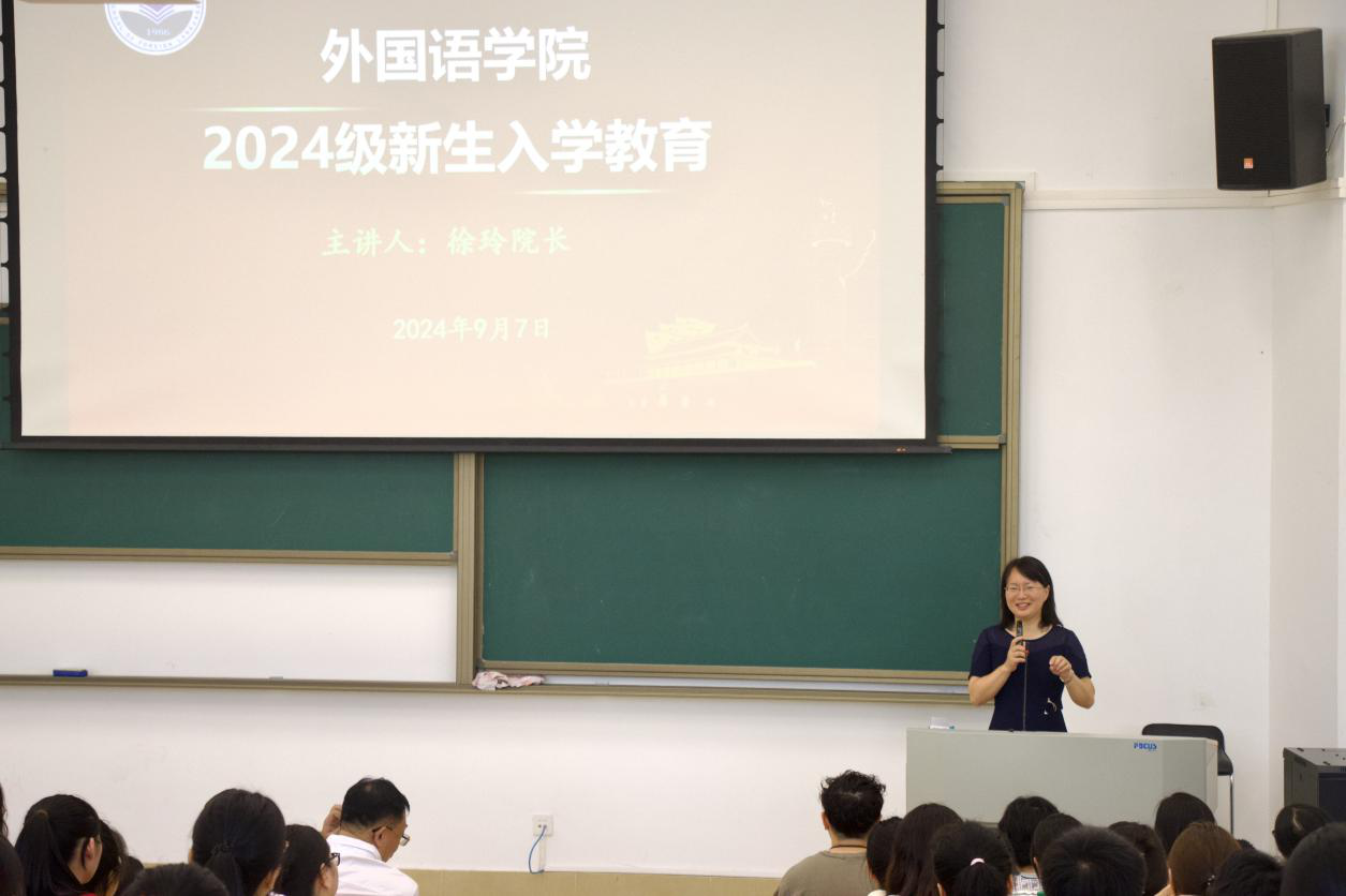 徐玲为同学们介绍了学校、学院的创建与发展历程,展示了我院的师资力量、科研成果,并介绍了本科生培养计划、提出了专业学习的要求等。她深入分析了人工智能技术对外语学习的影响和挑战,提出了培养卓越创新人才的新思路和新路径,鼓励同学们不断追求新知识和技能,养成良好的学习、科研习惯。