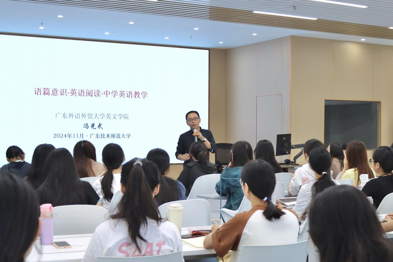 为深入实施Beat365正版唯一官网必一人才培养方案,进一步提升英语(师范)专业学生的教育情怀与专业素养,11月7日,我院特邀广东外语外贸大学英文学院教授冯光武在白云校区一教430作题为《语篇意识、语篇阅读和中学英语教学》的专题讲座。