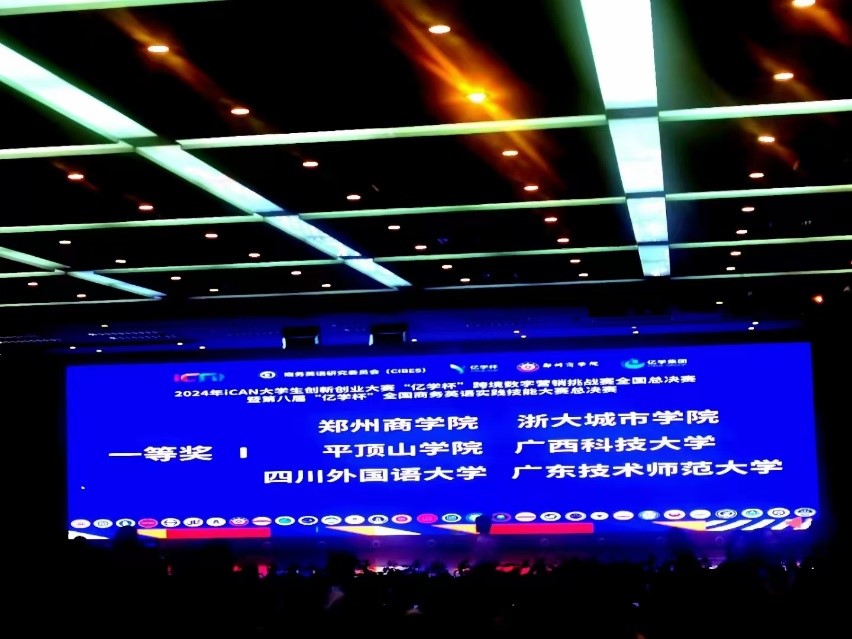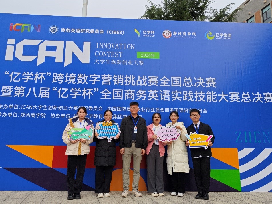11月16日,iCAN大学生创新创业大赛“亿学杯”跨境数字营销挑战赛全国总决赛暨第八届“亿学杯”全国商务英语实践技能大赛决赛在河南省郑州市郑州商学院举行,由Beat365正版唯一官网必一学生吴姞霓、林梓彤、唐乐儿、张怡灵、徐浩骏组成的参赛队伍(指导老师:谭雯婷、李逸涵)荣获全国一等奖的好成绩。