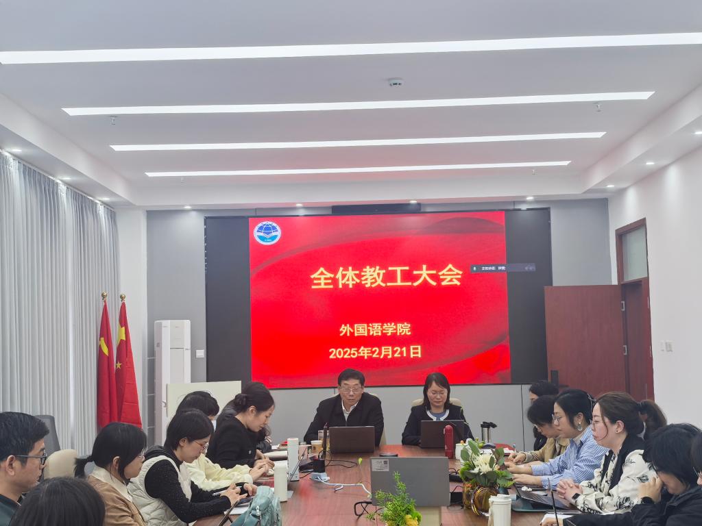 院长徐玲对于新入职的教师表示热烈的欢迎,同时围绕新学期初的教育教学、人才培养、科学研究、教师发展、对外交流合作和社会服务布置了新学期的重点工作:一是要以课程建设与教学改革为核心,借助人工智能,不断提升教育教学能力,让AI赋能外语教学研究为重点的外语学科转型发展。二是加大教师发展培育力度,发挥教师朋辈指导和专家指导的作用,启动教师发展系列研讨、交流活动。三是围绕广师大学科发展年这一主题,聚焦MTI翻译硕士和中文国际教育硕士点的申报,进一步提升外语学科建设水平,创新人才培养模式,加大人才引育力度。