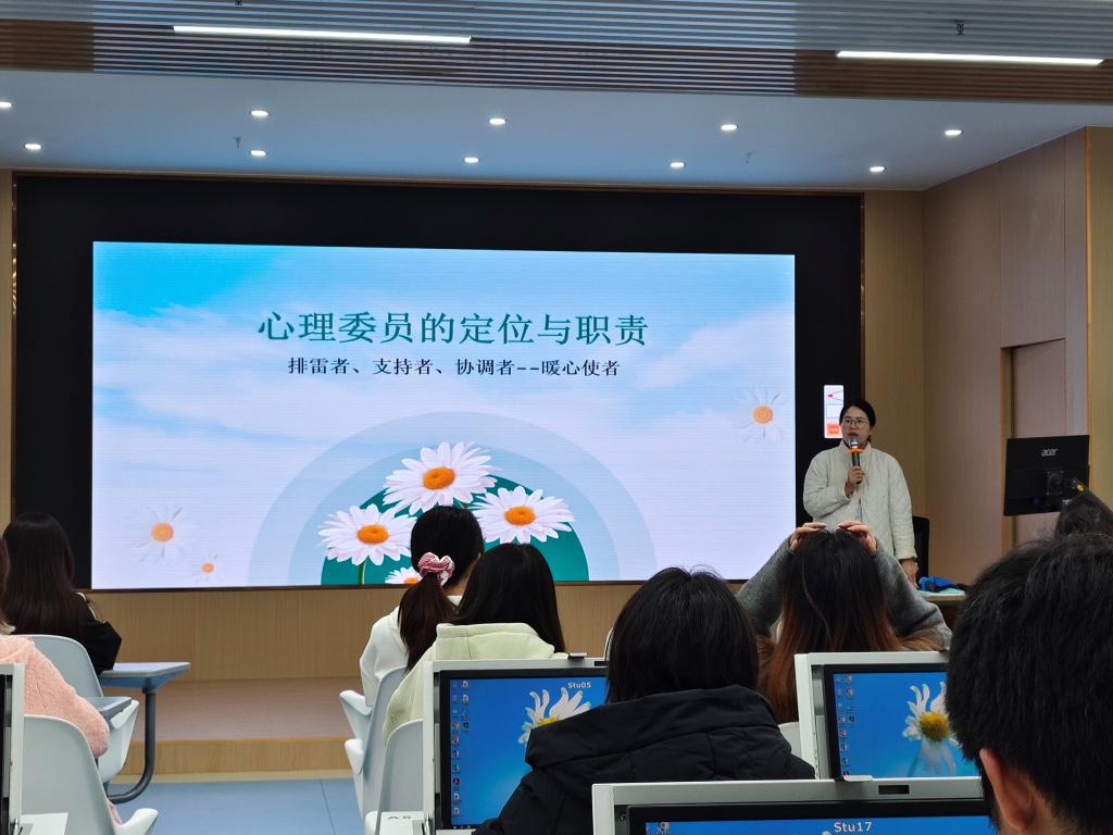 讲座中,余少绒老师围绕心理委员与宿舍长的职责定位、心理健康工作实务技能展开系统讲解。余少绒老师从心理委员和宿舍长的“桥梁”作用切入,着重强调心理委员需落实“十个一”工作要求,要求心理委员和宿舍长加强联动,主动与辅导员、班主任保持动态沟通,筑牢心理健康防护网。针对朋辈帮扶技巧,余少绒老师结合具体情境与互动问答,指出学生干部应立足“帮助者”角色,培养共情式倾听技巧、探问话术与适度自我表露的助人能力,倡导在关爱他人的同时需注重自我关照,以“如春日温暖有光”的积极状态传递朋辈支持力量。
