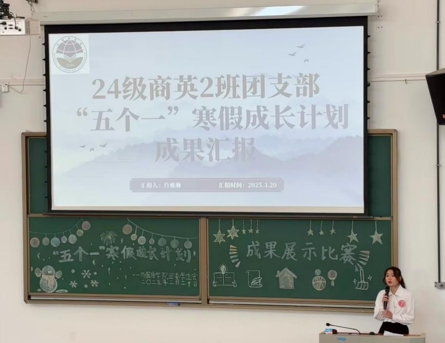 在此次比赛中,24级全体班级以团支部为单位,围绕"阅读一本好书、规划一次学业、开展一次锻炼、宣传一次文化、参与一周劳动"五大主题,通过PPT、视频、图文等形式,立体化呈现寒假期间践行"五个一"计划的特色成果,生动诠释了理论学习与社会实践的深度融合。